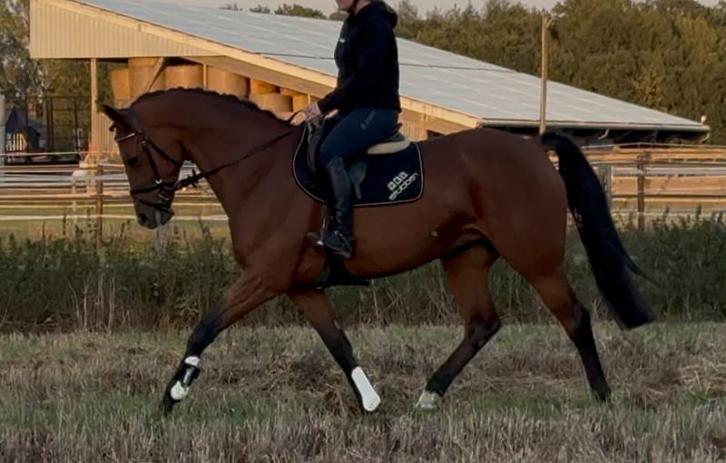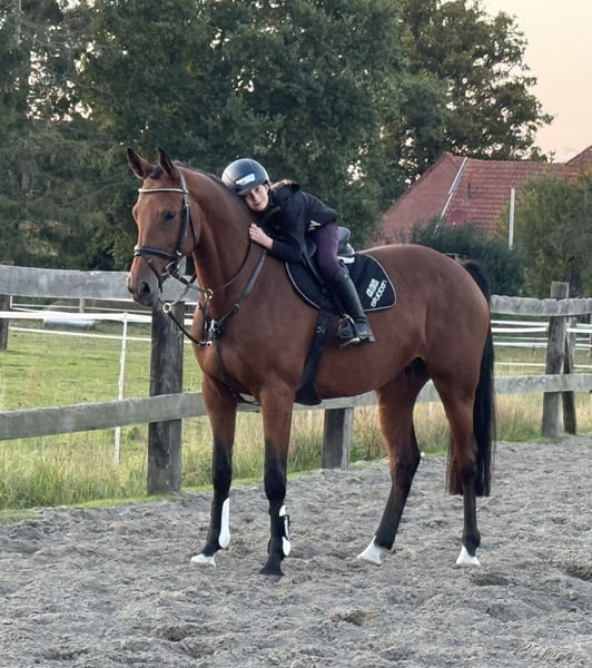 Zeer goed te rijden merrie met uitstekende afstamming! Vanwege dit is ze de afgelopen jaren in de fokkerij geweest. Het laatste veulen is onlangs gespeend en ze wordt nu weer aangereden. Fijn aan de hulpen, zeer mensgericht, maakt een mooie sprongetje. Als sport- of recreatiepaard, op verzoek kan ze ook op elk moment weer door onze hengsten gedekt worden. Natuurlijk gezond, geen bekende voorgeschiedenis of intoleranties. Een actuele zeer goede röntgenkeuring is al aanwezig. Videovragen etc. uitsluitend vooraf via WhatsApp mogelijk.