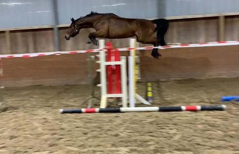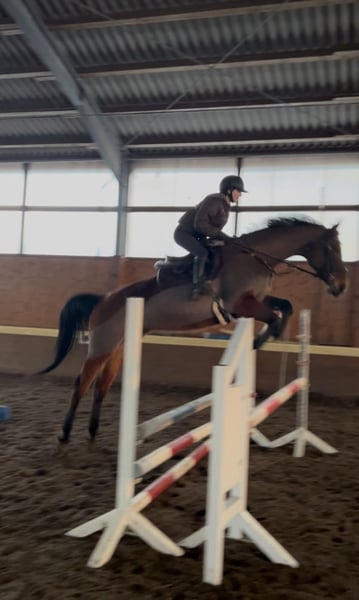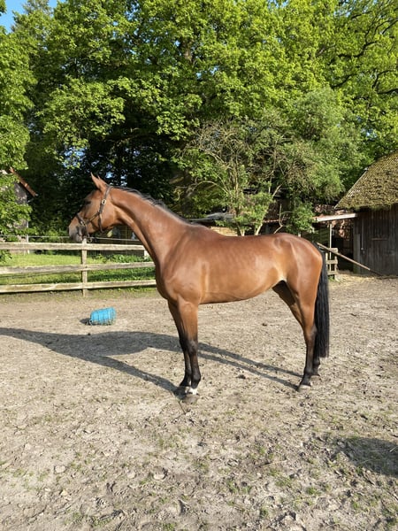 Soraya“ ist eine 8 jährige Hannoveraner Stute von Stolzenberg x Graf Top. Sie ist ca 175cm groß. Sie befindet sich aktuell im Prozess des Antrainierens nach einer 2 jährigen Fohlenpause. Sie wird bereits wieder regelmäßig dressurmäßig gearbeitet, unter dem Reiter gesprungen und geht regelmäßig ausreiten. Um auf dem Turnier zu starten, braucht sie jedoch noch ein bisschen mehr Routine. Sie ist im Umgang und beim Reiten brav und unerschrocken und auch beim Springen immer entspannt und läuft nicht am Sprung vorbei oder ähnliches. Sie hat ordentlich Vermögen am Sprung und ist sehr vorsichtig und geschickt beim Springen, sodass sie sicherlich mit ein wenig Ausbildung auch bis in die höheren Klassen starten kann. Auch beim Springen von Geländehindernissen hat sie bereits Erfahrung gesammelt. Bisher hat sie noch keine Turniererfahrung. Sie brachte 2025 ein Fohlen auf die Welt, welches als Goldprämienfohlen prämiert wurde. Sie nahm sofort beim ersten Mal besamen auf und sowohl die Geburt, als auch die Zeit mit dem Fohlen verliefen reibungslos. Sie ist selbst im Hannoveraner Hauptstutbuch als Zuchtstute eingetragen, weshalb sie auch für die Zucht interessant ist. Bei Interesse oder Fragen, melden Sie sich doch gerne bei mir. Laleh Alimoradian 015228924592