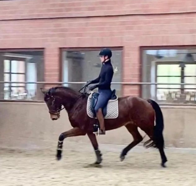 A causa di mancanza di tempo, vendo la mia cavalla Hannoverana di 9 anni, Fryda, molto poco usata. È molto interessante per la riproduzione grazie al suo pedigree (Fürst Wettin × Jazz) e alla sua andatura energica ed espressiva. A 6 anni, ha già avuto un puledro ed è stata molto facile da gestire in gravidanza. Fryda è stata anche montata: presso il suo allevatore in Germania (prima della sua gravidanza), e da me, anche se per un lungo periodo non è stata montata a causa della mia gravidanza. Ora sto ricominciando a montarLa. Mostra un po’ di inesperienza e prudenza, ma è molto motivata. Se non viene impiegata in riproduzione, il suo cavaliere deve essere molto calmo alla mano e con le gambe, per trasmetterLe la sicurezza che ancora le manca. In maneggio, è un vero tesoro: conosce tutto ciò che si trova in scuderia. In branco, è piuttosto a ranghi bassi, abituata alla stalla e al paddock. Non ha mai avuto problemi di salute, è affidabile alla ferratura e al carico. Altezza al garrese 164 cm. Una splendida cavalla da riproduzione, Una futura stella nel grande quadrato, O magari anche per il salto a ostacoli?! Vendo a un prezzo decisamente inferiore al valore, perché preferisco lo spazio alla cifra! Per ulteriori informazioni e video, contattami pure.