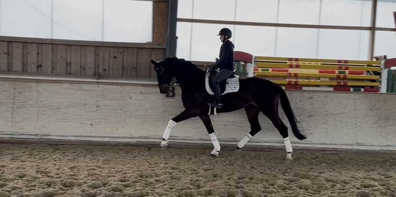 This nine-year-old mare is an exceptionally attractive, tall, and very elegant horse with solid fundamental qualities. She possesses three very good basic gaits. Her expressive trot is particularly noteworthy, while her naturally uphill canter and consistently rhythmic, correct walk complete her excellent movement profile. So far, she has been trained primarily by leisure riders, which means her dressage training has not yet been a focus. However, this presents a great opportunity: she has all the prerequisites to develop into a high-quality dressage horse with proper training. Thanks to her intelligence, good attitude towards work, and rideability, we believe she will quickly grasp new lessons and progress swiftly in her training. In handling, she is very pleasant and uncomplicated. She is human-oriented, calmly stands for grooming, remains quiet at the grooming area, and comes from very good hands—this is clearly reflected in her behavior. She is also familiar with hacking and proves to be reliable during rides. This mare is ideal for a rider who enjoys further training and developing a horse with a lot of quality. Location: Rosenheim Feel free to browse our other horses for sale—perhaps there is another suitable horse for you. The sales photos will be added in the coming days. Due to the current weather conditions, it is temporarily difficult to take suitable pictures.