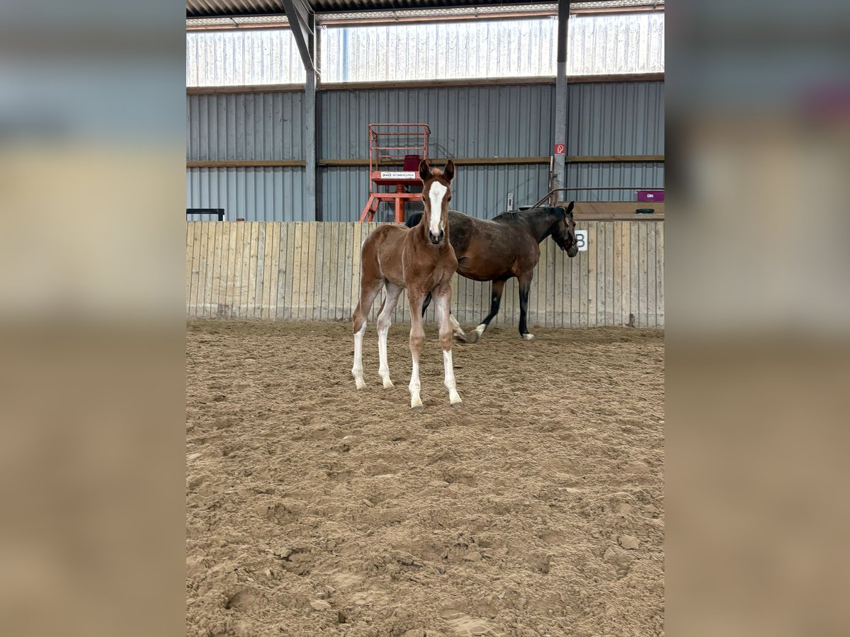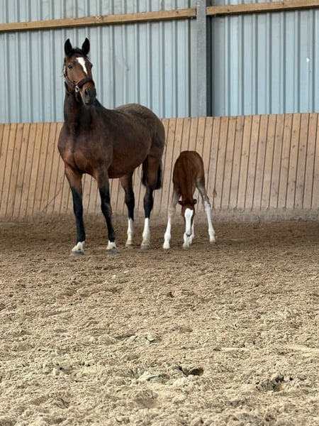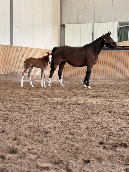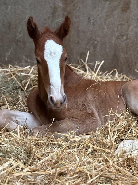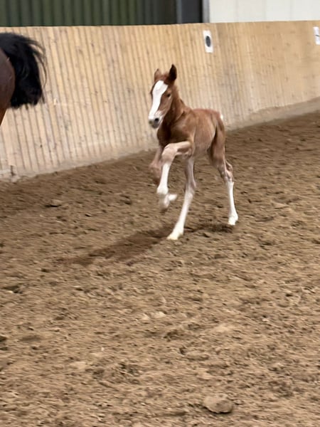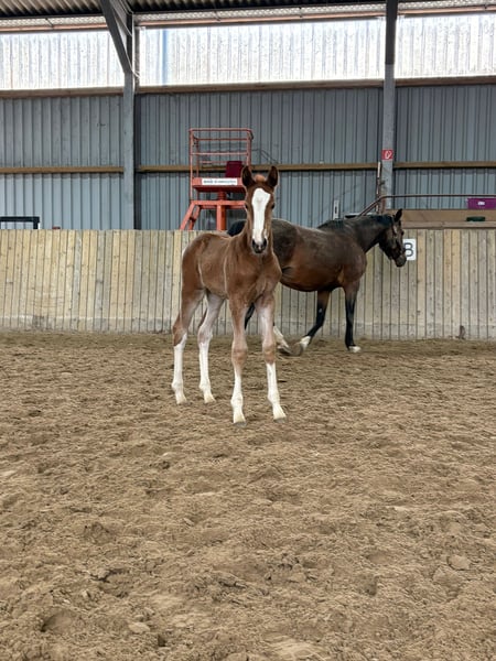 Beautifully marked pinto filly with charm and confidence For sale is an exceptionally attractive, colorful filly. Even at this young age, she impresses with her friendly nature, plenty of charm, and remarkable self-assurance. She is curious, human-oriented, and very receptive, displaying age-appropriate openness. Her harmonious conformation and expressive appearance already reveal her great potential. With her elastic movements and natural presence, she knows how to showcase herself confidently. This promising foal has excellent prospects for a successful future—whether in sport, breeding, or as a loyal leisure partner. She is raised in optimal conditions, well-socialized, and already familiar with daily handling by people.
