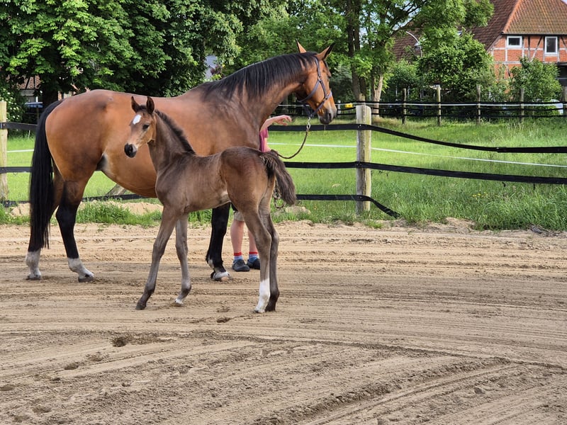 Ghianna, the daughter of Global Hope, is a striking foal with elegance in her overall appearance. She has an expressive head and face, as well as powerful movements with plenty of drive throughout her body. At the previous foal show, Ghianna secured 3rd place. Due to a maternal injury, we were unable to participate in the auction at Klosterhof Medingen.