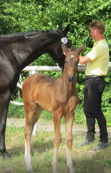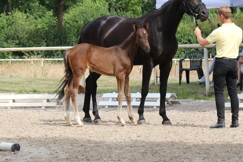 **Sales Advertisement:** From 20 foals: 4th place at the foal show in Nienhagen! **Hannoverian Filly for Sale** We offer a promising Hannoverian filly for sale. **Features:** - **Breed:** Hannoverian - **Gender:** Filly - **Year of Birth:** 2025 - **Color:** Black-brown - **Discipline:** Dressage This athletic and typey filly stands out with her elegant expression and excellent gaits. The walk, in particular, is exceptional. The foal is well-mannered, easy to handle, and has a friendly character. She comes from the successful lineage of EDOSTE. If you are interested or require further information, please feel free to contact me. We look forward to your inquiry!