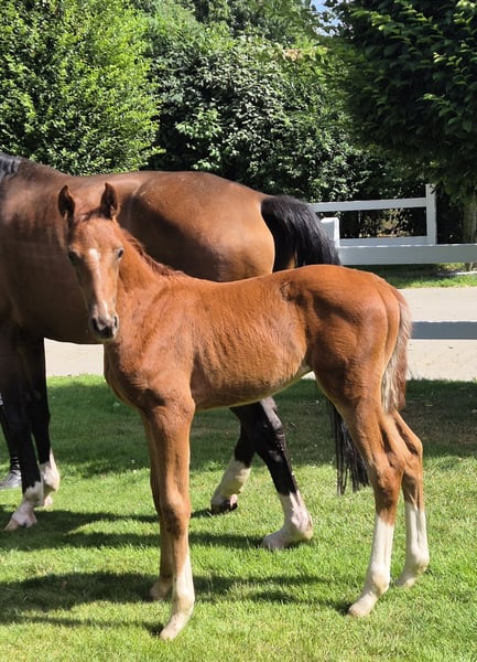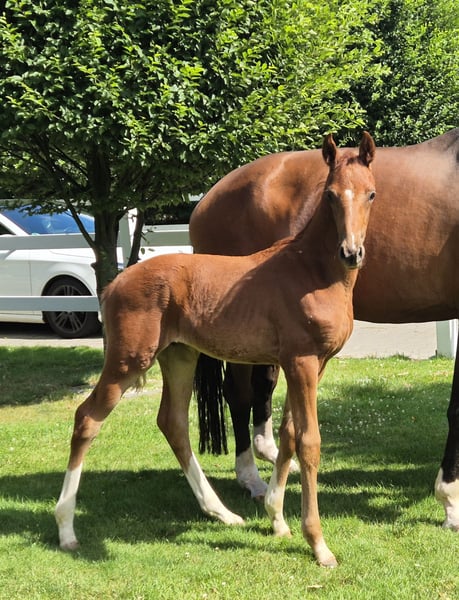 *** Escareno *** For Sale Significant colt by Shootingstar Escaneno out of a Fürst Romancier x Sir Donnerhall I mare. This charming dark chestnut impresses with quality and character. A championship horse is developing here for the big arena. His powerful trot, characterized by plenty of shoulder freedom, is unmatched! Current video: https://youtu.be/rU5hXon-YAM We kindly ask for inquiries by phone or via WhatsApp. Emails are NOT always checked in a timely manner! Viewing is possible at any time by appointment.