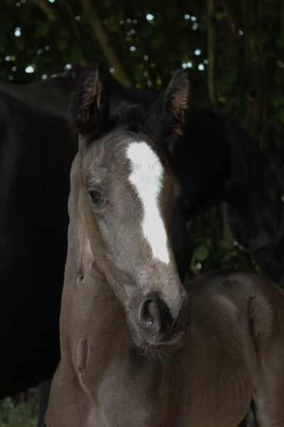 Zum Verkauf steht der außergewöhnlich typvolle Hannoveraner Rapphengst Juvinius vom Leisch, geboren am 15.06.2025. Dieser junge Charmeur überzeugt schon jetzt durch seinen modernen Ausdruck, kraftvollen Bewegungsablauf und seine auffallend freundliche Art. Sein Vater Jameson RS2 (Blue Hors Zack x Negro) gilt als einer der aufsehenerregendsten Dressurvererber Europas. Herausragende Rittigkeit, maximale Bewegungsqualität und eine Bilderbuch-Karriere zeichnen ihn aus. Die Mutter Rocella (Rotspon x Salvano) bringt eine Elite-Abstammung mit, die sich bereits vielfach im Sport bewährt hat. Mehrere ihrer Nachkommen sind erfolgreich bis Inter I und Grand Prix, eine Schwester läuft aktuell bei Hof Kasselmann. Rocellas Nachzucht zeigt sich besonders vielseitig – im Dressurviereck, im Parcours und sogar im Fahrsport. Sie ist zudem bekannt für ihre überdurchschnittliche Gesundheit: Mehrere Nachkommen wurden mit 1er TÜV geröntgt. Dieses Fohlen verspricht nicht nur sportliche Perspektive, sondern auch züchterische Relevanz – ein echter Kandidat für ambitionierte Dressurreiter oder Hengstaufzüchter, die auf Qualität und Leistung setzen. Juvinius wächst artgerecht im Herdenverband mit weiteren Fohlen auf, ist bestens sozialisiert, menschenbezogen und wird liebevoll umsorgt. Er ist gechipt, entwurmt und wird beim Hannoveraner Verband registriert. Aktuelle Videos sind vorhanden und können bei ernsthaftem Interesse gern zur Verfügung gestellt werden. Kontaktieren Sie uns gerne für weitere Informationen oder einen Besichtigungstermin.