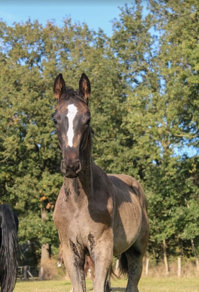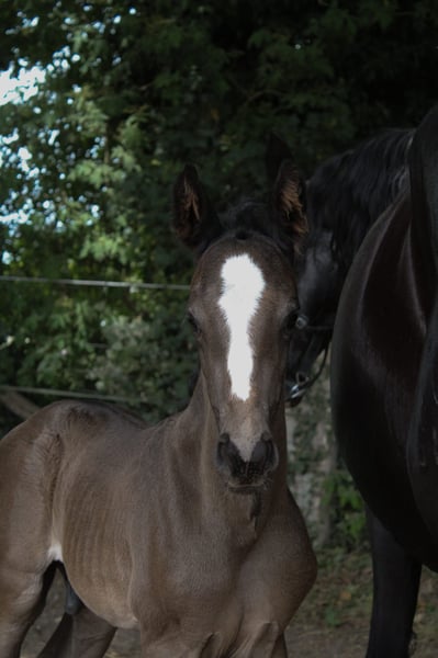 For sale is the exceptionally typified Hanoverian black stallion Juvinius vom Leisch, born on June 15, 2025. This young charmer already impresses with his modern expression, powerful movement, and strikingly friendly demeanor. His sire Jameson RS2 (Blue Hors Zack x Negro) is considered one of the most remarkable dressage sires in Europe. Outstanding rideability, maximum movement quality, and a picture-perfect career characterize him. The dam Rocella (Rotspon x Salvano) comes from an elite lineage that has already proven itself multiple times in sport. Several of her offspring have successfully competed up to Inter I and Grand Prix, and a sister is currently competing at Hof Kasselmann. Rocella's progeny shows remarkable versatility – in the dressage arena, in show jumping, and even in driving sports. She is also known for her above-average health: several offspring have been X-rayed with a grade of 1. This foal promises not only sporting potential but also breeding relevance – a true candidate for ambitious dressage riders or stallion breeders who focus on quality and performance. Juvinius is growing up in a species-appropriate herd with other foals, is well-socialized, people-oriented, and is lovingly cared for. He is microchipped, dewormed, and will be registered with the Hanoverian Association. Current videos are available and can be provided upon serious interest. Please feel free to contact us for further information or to arrange a viewing appointment.
