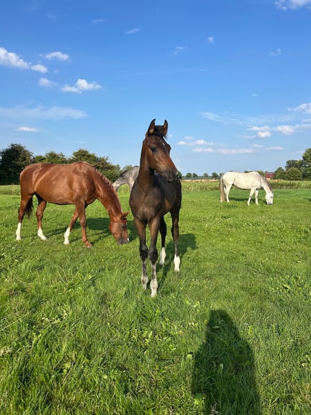 Precioso y enérgico potro macho de Dynamic Dream de una yegua Stpr.A de Floriscount/Don Frederico/Weltmeyer. Este potro macho tiene un tipo moderno y está muy bien educado con un excelente carácter. Para más información, no dude en preguntar.