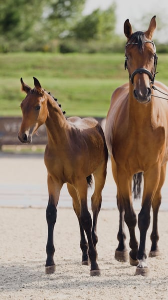For sale is ZERAFIN, a son of ZINEDREAM x STOLZENBERG, born naturally and unobserved on March 24, 2025. At the Bonhommer Foal Championship, Zerafin was the best Hannoverian show jumping foal and placed seventh overall (scores: movement 7.9; type 9.0; exterior 8.5). With the five-time Grand Prix winner Zinedream as his sire, known for his outstanding hereditary qualities and international success at 1.60m level, and his maternal grandsire Stolzenberg, Zerafin can be expected to exhibit modern jumping technique and excellent breeding qualities in terms of performance and charm. A half-brother of his dam, CONGRATO (by Contendro I out of Graf Top), currently competes successfully over 1.45m internationally, along with other offspring from this line. Additionally, Zerafin shares both his sire and maternal grandsire with premium stallion ZENEGRO. Zerafin is lively in movement and powerful. His temperament, with the "dream character" of his father and mother, is characterized by calm attentiveness and an exceptionally friendly and curious nature. He is currently growing up in a caring herd with four other young stallions and is regularly led from the shared paddock to the pasture. He is well accustomed to veterinary care, farrier visits, and trailer transport.