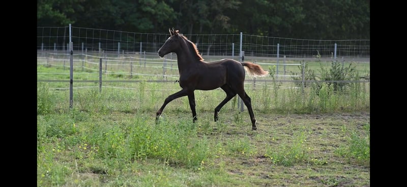 Stylowy ogier ciemnogniady o wymarzonej osobowości Na sprzedaż jest niezwykle typowy i elegancki ogier ciemnogniady z najlepszym pochodzeniem: Bon Esprit x Belissimo M. Ten młody ogier przekonuje nie tylko swoją poprawną budową i stabilną konstitucją, ale przede wszystkim swoją charyzmą i doskonałymi predyspozycjami. Złoty charakter – towarzyski, bezproblemowy i absolutnie grzeczny w codziennym obcowaniu. Zna prowadzenie, kowala i wszystkie podstawowe wymagania z pewnością. 3 bardzo dobre podstawowe chody z świetnym wygięciem i perspektywą na sport ujeżdżeniowy. Stylowy, nowoczesny i przy tym z dużą osobowością. Młode koń z najlepszym pedigrée, który zachwyca zarówno jakością, charakterem, jak i urokiem.