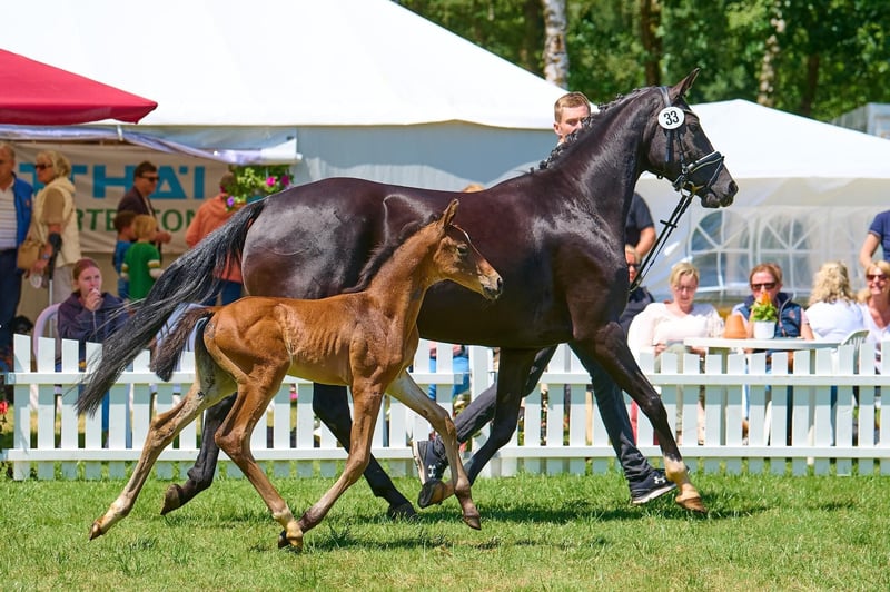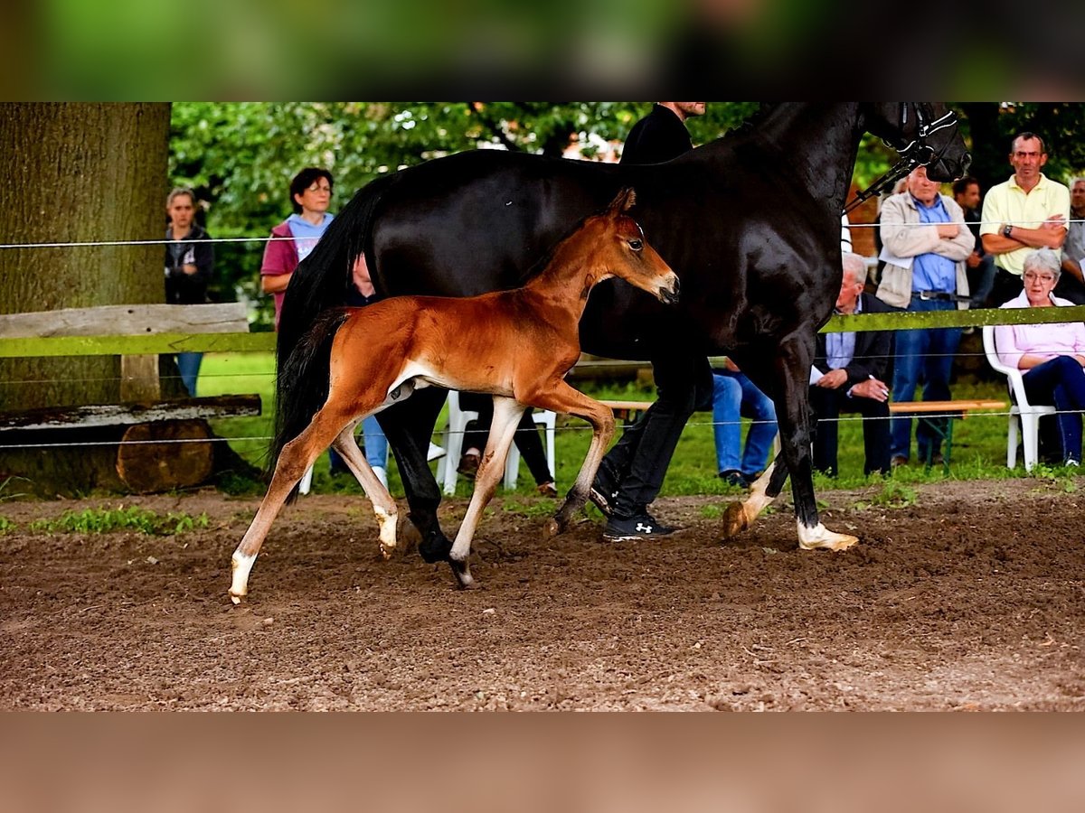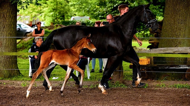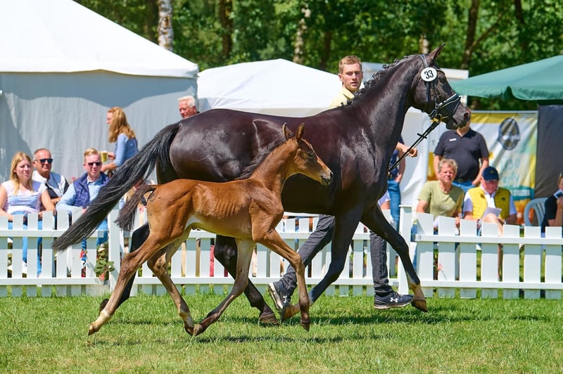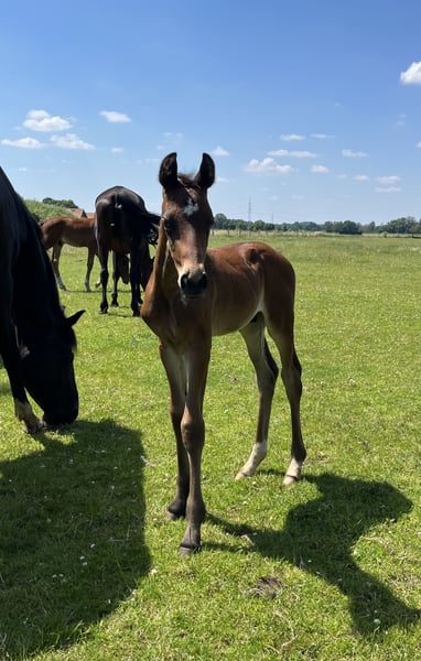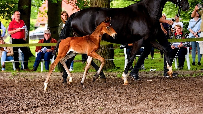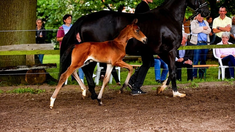 For sale is a typy and movement-rich 2-year-old stallion from an interesting breeding. He comes from the first foal crop of the Oldenburg Premium Stallion Bon Bolero OLD and a state premium mare with an exceptionally interesting performance pedigree (Emilio Sanchez x Don Frederico x Wenzel). "Bonavino" combines modern rideability, excellent basic gaits, and an absolutely correct conformation. As a foal, he already demonstrated his outstanding quality and received a Gold Premium award from the Hanoverian Verband (PZV Verden), with particular praise for his movement strength, correctness, elegant appearance, as well as his rhythm and gait quality. He qualified for the Hanoverian Foal Championship at Lohberg, where he was the youngest foal with impressive presence, earning an 8.5 for his movement and a 9.0 for type and quality. Bonavino is raised appropriately in a stable herd of young stallions with peers. He is socially confident, curious, friendly, and uncomplicated. He is accustomed to trailer loading, unfamiliar venues, and consistently behaves well and cooperatively. He possesses all the qualities desired for a future dressage career: quality, presence, nerves of steel, and a correct foundation. Therefore, he is of interest to dressage riders wishing to secure a young talent early or to ambitious riders who value character and rideability. Bonavino is available for a loving, competent, and supportive home. Viewing possible at any time by arrangement.