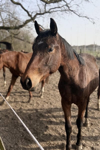 Zum Verkauf steht ein typvoller und bewegungsstarker 2-jähriger Hengst aus einer interessanten Anpaarung. Er stammt aus dem ersten Jahrgang des Oldenburger Premiumhengstes Bon Bolero OLD und einer Staatsprämienstute mit hochinteressantem Leistungsstamm (Emilio Sanchez x Don Frederico x Wenzel). „Bonavino“ vereint moderne Rittigkeit, hervorragende Grundgangarten und ein absolut korrektes Exterieur. Bereits als Fohlen zeigte er seine außergewöhnliche Qualität und erhielt eine Goldprämie des Hannoveraner Verbandes (PZV Verden), hervorgehoben wurde besonders seine Bewegungsstärke, Korrektheit, Formschönheit sowie Takt und Bewegungsgüte. Qualifiziert für das Hannoveraner Fohlenchampionat auf dem Lohberg präsentierte er sich als jüngstes Fohlen mit beeindruckender Präsenz und wurde mit einer 8.5 für die Bewegung und einer 9.0 für Typ und Qualität benotet. Bonavino wächst artgerecht in einer stabilen Junghengstherde mit gleichaltrigen auf. Ist sozial gefestigt, neugierig, freundlich und unkompliziert. Er kennt Hängerfahren, fremde Plätze und zeigt sich stets brav und kooperativ und bringt alles mit, was man sich für eine zukünftige Karriere im Dressursport wünscht: Qualität, Präsenz, Nervenstärke und ein korrektes Fundament. Er ist daher interessant für Dressurreiter/in, die ein junges Talent früh sichern möchten, oder für den ambitionierten Reiter/in, die Wert auf Charakter und Rittigkeit legen. Bonavino steht in ein liebevolles, kompetentes und förderndes Zuhause zum Verkauf. Besichtigung jederzeit nach Absprache möglich.
