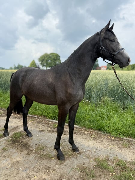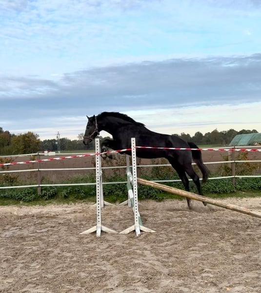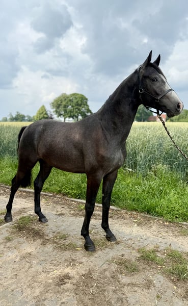 **For Sale: Hanoverian Stallion (Born 2023)** For sale is a promising Hanoverian stallion, born in 2023. This young stallion has the potential to become an excellent sport partner. Special Features: - Breed: Hanoverian - Gender: Stallion - Year of Birth: 2023 - Potential: Stallion candidate - Color: May turn gray - Suitability: Ideal for show jumping - Vet check available: No findings! He captivates with his charming personality and promising lineage. With his athletic build and natural jumping ability, he is predestined for show jumping. The stallion is well-socialized and already shows a great willingness to learn. Hicks Highlight is a top-class young stallion. He has not grown up like most young horses; he has been handled every day. Therefore, he is already familiar with a lot of human contact, haltering, leading, grooming, and washing, which will ease his further training. Moreover, he has been loaded multiple times for summer pastures and recently to the veterinary clinic for the vet check, which was also no problem. Vet check with no findings. Regular farrier appointments, proper vaccinations, and deworming are prerequisites for me, and here the stallion shows exemplary behavior. A lot of work, time, and love have gone into him. Due to his lineage, body structure, and development, he is a potential candidate to become a fascinating stallion. I wish for the best home for Hicks. If you are interested or have further questions, please feel free to contact me. Visit us and see for yourself this talented stallion!