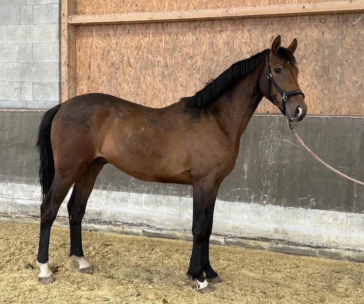 Hongre de 2 ans directement du sélectionneur d'une excellente lignée. Actuellement, il mesure environ 1,62 m et est issu de Rockdale / Lauries Crusador. Le hongre possède des radiographies très bonnes et récentes, y compris du dos... Il grandit paisiblement en groupe et est facile à manipuler.