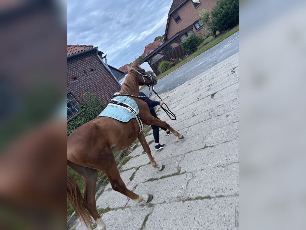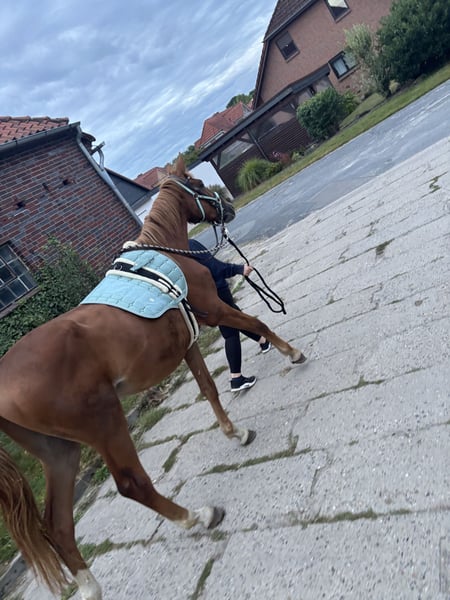 Hannoverian stallion, born in 2023, chestnut, with a height of 162 cm – a promising young prospect for dressage. This young stallion impresses with his elegant appearance and a solid foundation. His strong build and harmonious conformation make him an ideal candidate for high-level dressage competition. The chestnut is already well-trained and displays an attentive, eager-to-learn attitude. With his balanced temperament and natural talent for dressage, he is well-suited to develop into a reliable partner for ambitious riders in the coming years. This promising young talent comes from a performance-oriented bloodline and has been carefully prepared for further training. It presents an excellent opportunity for riders seeking a young, well-trained Hannoverian for dressage. Please feel free to contact me for more information and to arrange a viewing.