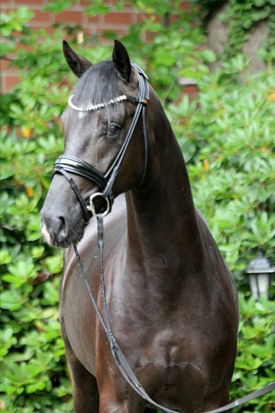 Dieser sympathische Rappe weiß auf Anhieb mit seinen vier weißen Socken zu gefallen. Auch im Bewegungsablauf bleiben keine Wünsche offen. Mit hervorragender Einstellung steht einer hoffnungvollen Karriere unter dem Reiter nichts im Wege. Das diese Qualitäten nicht von ungefähr kommen verrät ein Blick in sein Pedigree. Vater Secret gilt bereits jetzt als ein Ausnahmepferd mit noch nie dagewesener Vererbungsbilanz. Alleine auf der Weltmeisterschaft der jungen Dressurpferde in Ermelo 2024 stellt Secret 15 Teilnehmer, allein 10 davon im Klassement der sechsjährigen Pferde. Darunter den Vize-Champion der vierjährigen, den Gewinner der Bronzemedaille der fünfjährigen und die Vize-Weltmeisterin der sechsjährigen Dressurpferde. Auf dem zeitgleich stattfindenden Bundeschampionat gingen weitere 25 Nachkommen von Secret an den Start, darunter zahlreiche Finalteilnehmer und der Vizebundechampion der vierjährigen Stuten und Wallache. Die Zahl der gekörten und anerkannten Söhne ist laut FN auf 55 angestiegen darunter zahlreiche Prämienhengste und gefeierte Preisspitzen. Großvater Bon Coeur beeindruckt sowohl mit seiner eigenen sportlichen Karriere, als auch mit der seiner Kinder. Er selbst war Prämienhengst seiner Körung, Sieger seines 30-Tage-Tests und zweimaliger Vizebundeschampion. Seine Titel erstrecken sich zudem über den Weltmeyer-Preis 2018 und den Grande Preis 2023. Röntgenbilder liegen vor. Video auf Anfrage.