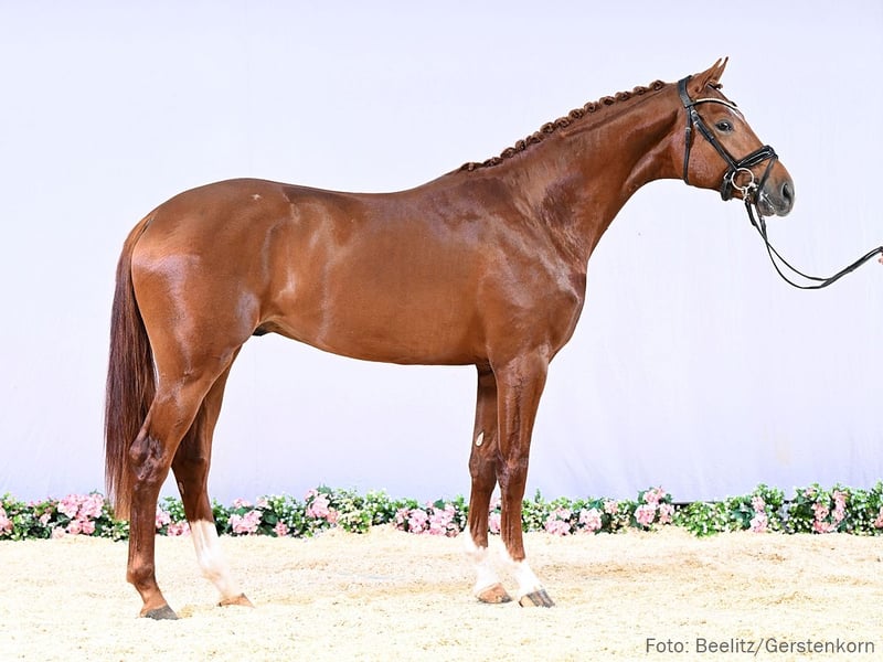 Bei der Hengstvorauswahl gesichtet, präsentiert sich diese zusätzliche Offerte als interessantes Nachwuchspferd. Noch ungeritten, überzeugt er mit großem Potenzial. Eine persönliche Begutachtung ist beim Aussteller möglich; Besichtigungstermine vermitteln wir gerne. Die Abholung erfolgt direkt vor Ort beim Aussteller. Aus der Mutterlinie stammen der gekörte Hengst LaFerrari v. Le Vivaldi sowie Benetton’s Bugatti (S*) und Benetton’s Bella Donna (M**). 2. Generation Sportpferde Dressur: Benetton's Bugatti v. Benetton Dream (DRE: S* mit Raphaela Adami); Belladonna/Benetton's Bella Donna v. Benetton Dream (DRE: M** mit Katharina Weckerle); Django 407 v. Dante Weltino (DRE: M* mit Lena Rathjen). Aufbauprüfungen Dressur: Spirit 437 v. Sezuan's Donnerhall (DRE: L). gekörte Hengste: gek. Hengst LaFerrari/v. Le Vivaldi v. Le Vivaldi (Verden 2018,HM 2018: 67.000 €). Auktionspferde: Don Louis v. Don Corazon (VA 2016). Bes. Prämientöchter: HannPr Leva LaVie v. Le Vivaldi. 3. Generation Sportpferde Dressur: Laisser-Faire 3 v. Lauries Crusador (DRE: M** mit Marie-Celine Simon). Sportpferde Springen: HannPrA Seniora/Seniora 8 v. Stakkato (SPR: int. 1,40 m mit Alexa Stais,Herwart von der Decken-Schau Verden 2018); Balinera RS v. Big Star (SPR: 1,35 m mit Finja Bormann); v. Stakkato (SPR: 1,30 m mit Sergey DADONOV). Aufbauprüfungen Springen: Be Wild/Be Wild RS v. Big Star (SPR: 1,30 m mit Finja Bormann); All for love RS v. All Star (SPR: L). Bes. Prämientöchter: StPr Landliebe v. Lauries Crusador. 4. Generation Sportpferde Dressur: Designer 14 v. Dancier (DRE: Grand Prix mit Uta Gräf); Dai Jin 2 v. Don Frederico (DRE: Grand Prix mit Sven Dapper,Dressurprüfung Kl. S*** - Grand Prix Kür - 2018,Dressurprüfung Kl. S*** - Grand Prix de Dressage 2016,Bundeschampionat f. Reitpferde 2008); gek. Hengst Beradini v. Boston (NLD) (DRE: int. S** mit Annika Feldhaus,München-Riem 2013); Chopard 24 v. Charmeur (DRE: int. S** mit Lena Paul); Dream of Beauty 2 v. Dream of Glory (DRE: S** mit Charlotte Kähn); Danciano M v. Dancier (DRE: S** mit Hanna Peter); Darino Dackelblick v. De Niro (DRE: S** mit Lilli Richter,Deutsche Meisterschaft der Junioren Dressur -Wertung- 2021); Sherwood Forest 2 v. Sherlock Holmes (DRE: S** mit Klaus Tönsfeuerborn); gek. Hengst Don Corazon/Tannenhof's Don Corazon v. Don Frederico (DRE: S** mit Leif Hamberger,Verden 2006,HM 2006: 63.000 €); Gracelyn 2 v. Grand Galaxy Win T (DRE: S* mit Carola Koppelmann); Weltina 34 v. All at once (DRE: S* mit Alisa Miller); Royal Rose M v. Londontime (DRE: S* mit Hanna Peter); gek. Hengst First Dancer v. Fürstenball (DRE: S* mit Ann-Christin Wienkamp,Verden 2018,HM 2018: 52.000 €); StPrA Fabriana/Fabriana 14 v. Fabriano (DRE: S* mit Karin Prim-Tietz); Le-Baron v. Loredo (DRE: S mit Röhr,Julia-Beatrice,SPR: S mit Bormann,Heinrich); gek. Hengst Venom v. Quaterhall (DRE: M** mit Kristina Pickl,München-Riem 2019); gek. Hengst D'Olympus/v. Don Olymbrio L v. Don Olymbrio L (DRE: S* mit Alvaro Rodriguez Siscar,Verden 2017,HM 2017); All inclusive 10 v. Apache (DRE: M** mit Juli Theres Bollmann); Scampolo B. v. Sezuan (DRE: M** mit Werner Bergmann); gek. Hengst Sherwood/Sherwood 4 v. Sherlock Holmes (DRE: M** mit Andreas Nissen,Verden 1996,HM 1996,Bester Hengst des Jahrgangs 1998); Jameson Black v. Johnson (DRE: M* mit Emma Käberg); Nymphenburgs Royal Flash v. Royal Doruto (DRE: M* mit Gonzalo Arnaiz Kanthak); Lord Laurie M v. Lauries Crusador (DRE: M* mit Raffaela Constanze Hartinger); Dechamp v. De Niro (DRE: M* mit Simone Auer); Wallaby 38 v. Werther (DRE: M mit Mittwenz,Susann). Sportpferde Springen: gek. Hengst Quality on Top/von Quality v. Quality (SPR: 1,45 m mit Erin HAAS,Verden 2009,HM 2009); Calmund v. Contendro I (SPR: 1,40 m mit Mathias Kornes); Le-Baron v. Loredo (DRE: S mit Röhr,Julia-Beatrice,SPR: S mit Bormann,Heinrich). Aufbauprüfungen Dressur: Django Unchained 21 v. Dante's Junior (DRE: M mit Florian Schrägle); Valentin Royal M v. Vivino (DRE: L); HannPrA Flower/Flower 86 v. Fürst Toto (DRE: L,Finalteilnehmer Bundeschampionat 4j.Reitpferde 2024,Bundeschampionat f. Reitpferde 2024,Herwart von der Decken-Schau Verden 2023); Royal Angel M v. Viva Gold (DRE: L); Fine Future 4 v. Fahrenheit (DRE: L); Emilio de Vino v. Emilio Sanchez (DRE: L); gek. Hengst Eminem Forever M/Eminem M v. Emilio Sanchez (DRE: L,Verden 2024); gek. Hengst Krokant Star v. Kremlin MD (DRE: L,Vechta 2022); Zündele v. Zee Mee Blue (DRE: L); Wilma/Wilma 290 v. Hot Spirit (DRE: L); Quattro Stagioni v. Que Sera (DRE: L); Riana/Riana 40 v. Sir Alfred (DRE: L); Ludwig 156 v. Londonderry (DRE: L); StPr Laurin/Laurin 101 v. Longchamp (DRE: L). Aufbauprüfungen Springen: Fydelio d'Aprés v. Frascino (SPR: L); Littbarski v. Landor S (SPR: L); Graf Gold v. Graf Grannus (SPR: L,VA 1995). Aufbauprüfungen Gelände: Gino 581 v. Grafenstolz (Gelände: L). Besondere Sportergebnisse: Bulgari 16 v. Balesteros (Championat f. Reitpferde 2015,Championat f. Reitpferde 2014). gekörte Hengste: gek. Hengst Global Beat/v. Global Player v. Global Player (Verden 2022,HM 2022: 61.000 €); gek. Hengst Galaxico v. Grand Galaxy Win T (MS-Handorf 2022); gek. Hengst Vivarant v. Vivaldi (Vechta 2017); gek. Hengst v. United (Redefin 2011). Auktionspferde: Soul Sister v. So Perfect (FoVA 2021); Mona Lisa v. Morricone I (FoVA 2017); Black Velvet v. Bon Coeur (VA 2020); Luna/Luna Lux v. Longchamp (VA 2003); Shalom v. Sherlock Holmes (VA 1999). Bes. Prämientöchter: HannPrA So Magic v. So Perfect; HannPrA Darinka v. Dynamic Dream (Herwart von der Decken-Schau Verden 2024); HannPrA Scarlett K v. So Perfect; HannPr Feine Deern v. Foundation; HannPrA Johnsy v. Johnson; HannPrC Naomi Queen II v. Nobre; HannPr Zeynep v. Zack; HannPr Sinatras Hope v. Sinatra Song; EM Quintana v. Quality; StPr Däncy v. Dancier; StPr Sarstedt v. Stedinger; StPr Siera v. Samarant (Herwart von der Decken-Schau Verden 2010); StPr Red Rubina v. Rotspon; StPr Lena v. Longchamp (Ratje Niebuhr-Schau Verden 200