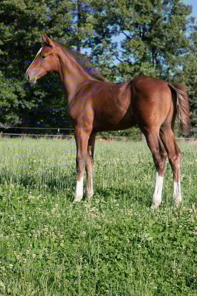 Modern aufgemachtes, ausdrucksstarkes Hengstfohlen mit klarer Perspektive für den Springsport. Typvoll, korrekt und bewegungsstark. Vater Uriko (Untouchable x Lavito) ist Holsteiner Topvererber mit internationalen Nachkommen bis 1.60 m. Modernes Springblut mit Rittigkeit, Übersicht und Vermögen. Über die Mutterlinie kommt Hannoveraner Springelite – Galant de Semilly x Glückspilz x Picard. Er ist altersgerecht erzogen, brav im Umgang und hat einen freundlichen Charakter. Bei Interesse oder weiteren Fragen stehe ich Ihnen gerne zur Verfügung. Besichtigungen sind nach Absprache jederzeit möglich.