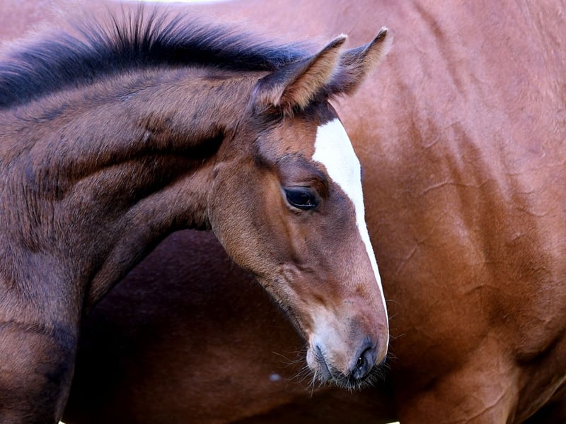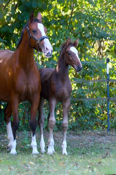 Nuestro Eddie es una verdadera potencia con una increíble cantidad de energía. De gran tamaño y con una base correcta, esperamos que alcance una altura final de aproximadamente 1,72 m. Con cuatro patas blancas y una gran estrella, seguramente será un atractivo. Sus hermanos mayores ya están teniendo éxito en el deporte: - Hermana de padre (hija de Diamant de Semilly) con 6 años ha competido internacionalmente en 1,35 m y ha sido colocada en saltos para caballos con notas de hasta 8,9. - Hermano de sangre (nacido en 2022) ha sido aprobado en Oldenburg. - Hermano de sangre (nacido en 2020) con 5 años ha sido colocado 13 veces en su primera temporada en saltos para caballos A y L. La abuela St.Pr. Galoupee también es abuela de los sementales aprobados Guiliano Gustavo (exitoso en 1,50 m internacional) y van Sandro MRE (doble campeón AWÖ y exitoso en 1,40 m). Su medio hermano Caspero ha ganado saltos hasta 1,40 m. Nos encantaría que Eddie llegara a manos que lo fomenten.