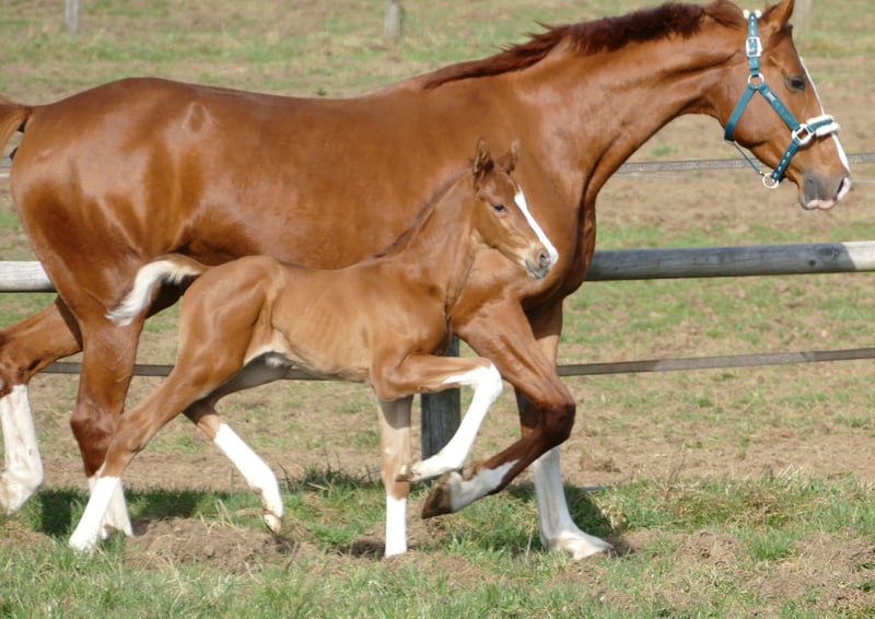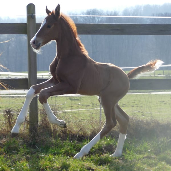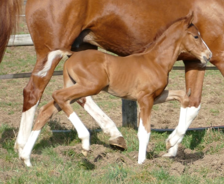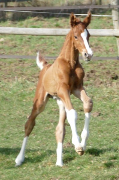 aus bestem Züchterhaus. Herrliches Fuchshengstfohlen, 4 x hoch gestiefelt mit Blesse vom bisher teuersten gekörten Hann.Hengst VIVINO 2,01Mill.€, der durch zahlreiche Siegerstuten, Siegerhengste und hochpreisige Auktionspferde bestens bekannt ist. Die Mutter stammt aus dem direkten Stamm des Dancier, die Großmutter des Fohlens ist Vollschwester zu Dancier und zur Mutter der Olympiastute Tokio Heilines Danciera und ist HvdD Schau prämiert. Sie zeichnet sich durch aussergewöhnliche Qualität und Schönheit aus. Wir freuen uns über telefonischen Kontakt und versenden bei Interesse gerne weitere Fotos und Videos