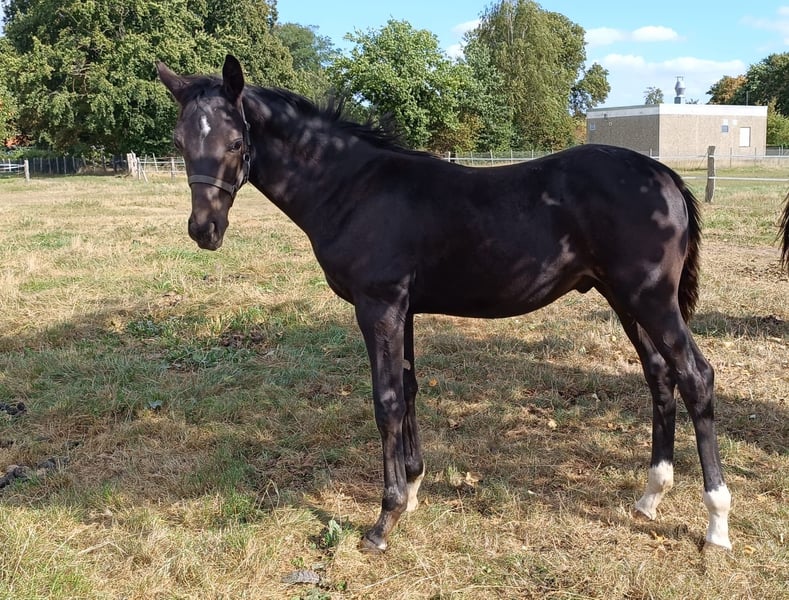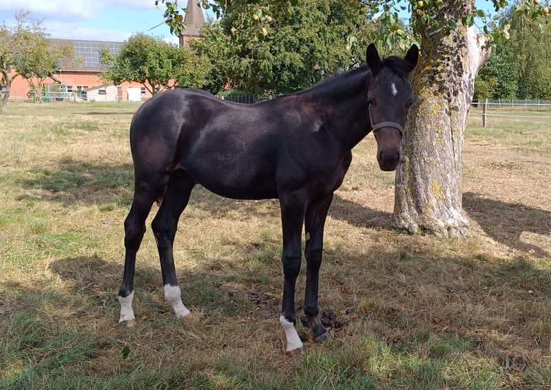 Dinero was born on April 29, 2025, is very curious, fearless, and has been very people-oriented since day one. He is also very athletic, muscular, absolutely correctly built, and has a fine, small, bright little head. Dinero shares the pasture with his mother and his two "big" sisters and is growing up in this small family unit. Three older siblings of Dinero are now being ridden by their new owners. Everyone is enthusiastic about their character, willingness to learn, and development under saddle. His mother is a state premium mare, passing on her potential and positive calmness to all her foals. Father Despacito impressed with a clear victory in the Hanoverian Championship in Verden with a dream score of 8.8 and subsequently won the silver medal at the Bundeschampionat in Warendorf. Despacito has influenced the last foal crops and consistently passed on his charisma and athleticism to all his foals. For further information, please feel free to contact us by phone (Tel: 05074-419). A viewing is possible at any time by prior arrangement.
