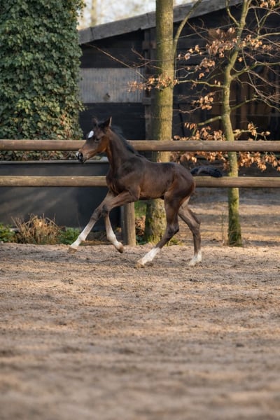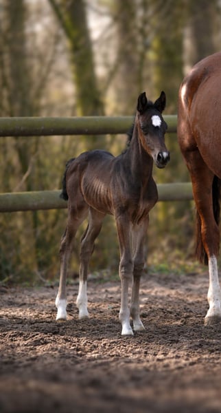 For sale is an exceptionally typy and modern colt with plenty of expression, charm, and excellent pedigree. This long-legged young horse already impresses with its elegance, presence, and harmonious conformation. It already catches the eye with its very good appearance, a lot of presence, and a natural charisma that immediately stands out. A true eye-catcher for enthusiasts of modern dressage horses. His pedigree combines proven dressage lines known for rideability, quality of basic gaits, and willingness to perform: Sire: Diamantenglanz – modern sport horse genetics with expressive and movement-loving offspring. Grandsire: Von und Zu – represents quality, frame, and very good basic gaits. Great-grandsire: Rotspon – one of the most established dressage lines, renowned for rideability, elasticity, and strong character. This gives the foal excellent potential for a successful future in dressage as well as an interesting perspective in breeding. The colt appears attentive, curious, and human-oriented. He is developmentally appropriate, correctly built, and impresses with his long legs, elegant lines, and natural presence. His overall appearance combines type, elegance, and modern sport horse quality – qualities that make him a genuine future prospect. A special foal for ambitious riders, breeders, or breeders who value modern dressage horse quality. Further information gladly available upon request.