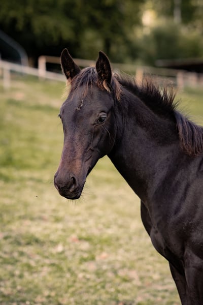 Zum Verkauf steht ein schwarzbraunes Hengstfohlen vom 01. Mai 2025. Der kleine Hengst überzeugt durch seine guten Grundgangarten, seine elegante Erscheinung und vor allem durch seinen außergewöhnlich lieben Charakter – beste Voraussetzungen, um sich später zu einem zuverlässigen und vielseitigen Reitpferd zu entwickeln. Sein Vater LeClerc verkörpert Eleganz und Ausdruck in besonderer Weise. Mit seiner großzügigen Silhouette, dem noblen Typ und den gleichmäßig sehr guten Grundgangarten hat er in kürzester Zeit auf sich aufmerksam gemacht. Besonders hervorzuheben ist sein wunderschönes Gesicht mit dem großen, ruhigen Auge, das Gelassenheit und Übersicht ausstrahlt – Eigenschaften, die er an seine Nachkommen weiterzugeben scheint. Die leistungsgeprüfte Mutter des Hengstfohlens stammt ab von Royal Blend x Prince Thatch xx x Werther. Muttervater Royal Blend vererbt sie zuverlässig einen besonders taktsicheren, klar durch den Körper schwingenden Schritt, der auch diesem Fohlen mitgegeben wurde. In Verbindung mit seinem liebenswerten Wesen und der Bewegungsqualität des Vaters entsteht ein Nachwuchspferd, das beste Perspektiven für die Zukunft bietet. Ideal als späteres Reitpferd – sowohl für den ambitionierten Freizeit- als auch den sportlich orientierten Reiter. Er wächst wie alle unsere Fohlen im Herdenverband mit weiteren Zuchtstuten samt Fohlen auf. Zurzeit genießt er seine artgerechte Aufzucht in bester Gesellschaft und kann ab Spätherbst in sein neues Zuhause umziehen.