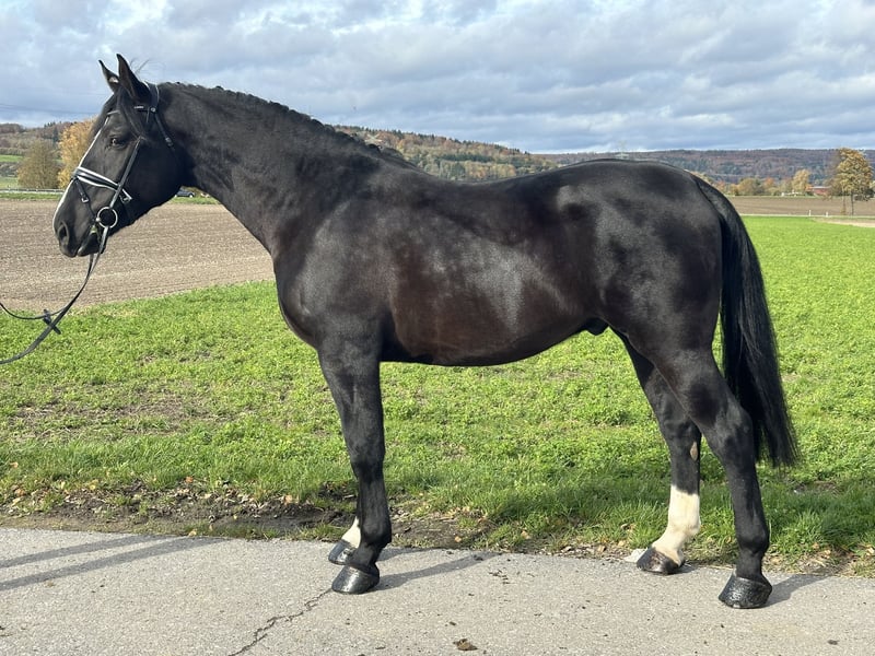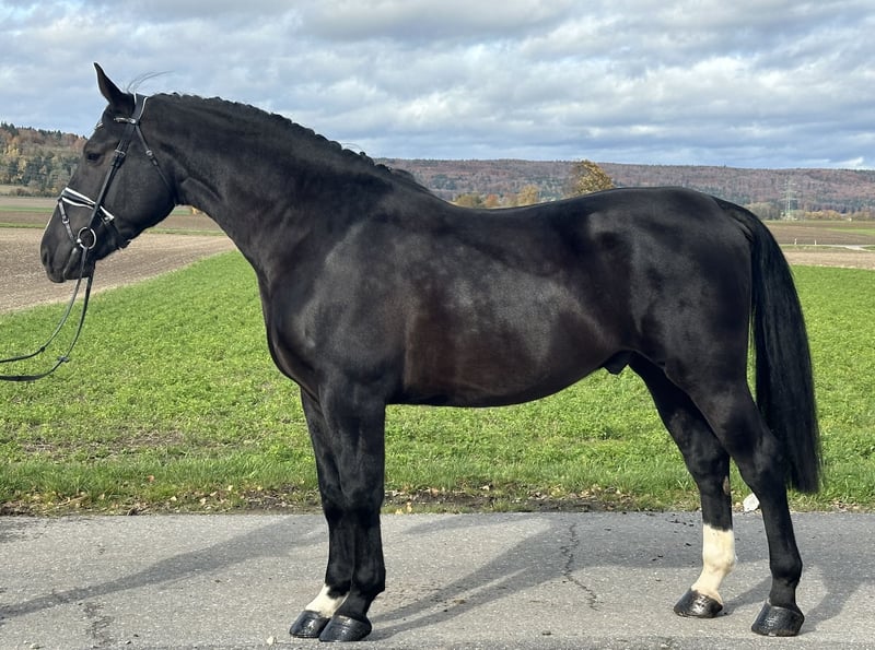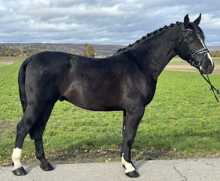 ! Dieser beeindruckende Rappe ist ein schweres Warmblut, geboren im Jahr 2022, und überzeugt durch seine kräftige Statur und sein freundliches Wesen. Mit einem Stockmaß von 166 cm bietet er die ideale Größe für den vielseitigen Einsatz. Der Wallach ist bereits gut im Fahren ausgebildet und zeigt viel Potenzial für weitere Ausbildungsschritte. Sein angenehmer Charakter und seine Bereitschaft machen ihn zu einem zuverlässigen Partner für Freizeit und Turnier. Bei Interesse stehe ich gerne für weitere Informationen und eine Besichtigung zur Verfügung!