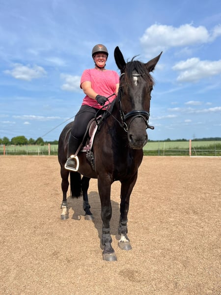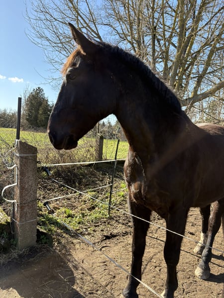 Schweren Herzens möchte ich mich von meinem 4 jährigen 2022 geboren 1,70 m großen schonend angerittenen schweren Warmblut Wallach trennen. Ich habe Torn mit 1 Jahren gekauft und seid dem ihn schonend drauf vorbereitet ein Reitpferd zu werden. Er hat sich ohne Probleme anreiten lassen und auch in seiner weiteren Ausbildung ist er einfach ein Schatz. Er ist allerdings nicht leitrittig er will schon getrieben werden. Da er sich in die Richtung entwickelt hat ist er leider Nix fürs Dressur Viereck und ich möchte ihm Nix aufdrängen was er nicht will. Ich sehe ihm im Freizeitbereich oder an der Kutsche. doppellonge kennt er.angefahren ist er aber nicht. Er is sehr lieb im Umgang Schmiede und verlade from Kinderlieb sehr aufmerksam achtet auch auf seinen Reiter. Wer nach vorn fällt da bleibt er stehen. Nichts des so trotz braucht er eine klare Führung. Ich habe keine Kosten und Mühen gescheut für ihn und somit hat er einen neuen Massimo Sattel angepasst bekommen der auch mit erworben werden kann. Ebenso würde ich ich sein restliches Equipment mit verkaufen ( +2.000,-€ ) der Sattel allein hatte einen Np. Von 2.900,-€ Nur bei wirklichem Interesse und auch nur in richtig gute Hände abzugeben.