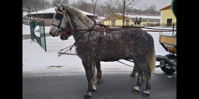 Remus schwerer Warmblutwallach, 5 Jahre, ca. 1,65 Stm., ein bestens gefahrener SW-Wallach, mit tollem Charakter, umgänglich, sicher im Straßenverkehr und zugfest, ein-u. zweispännig gefahren sowie freizeitgeritten, ein Schimmel mit viel Ausstrahlung, korrekt im Fundament, sehr guter Schritt, ein Pferd, was man nicht jeden Tag antrifft. 7000,00 Euro 0171/3132074