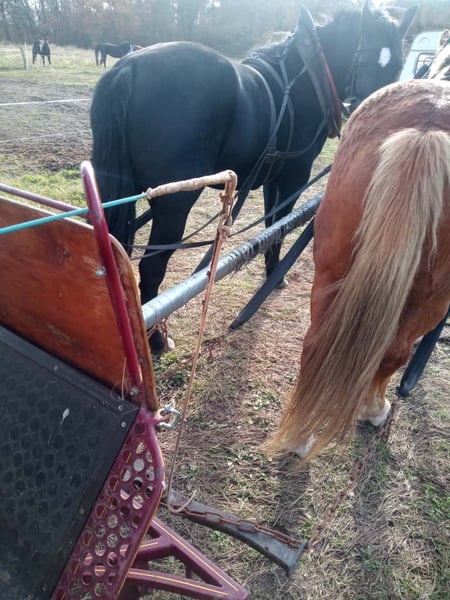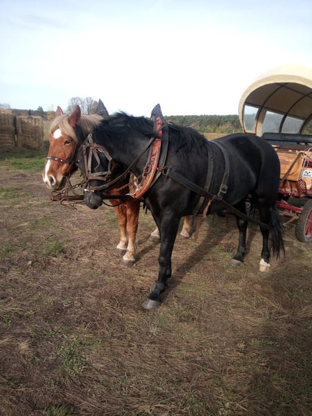 Junge, hübsche 4-jährige Stute. Sicher im 2-Spänner gefahren. Eingeritten, Geländesicher, Schmiede- und Verladefromm.