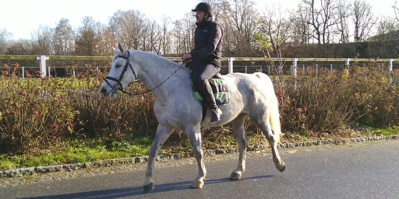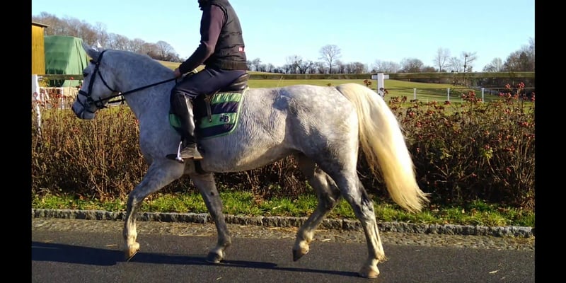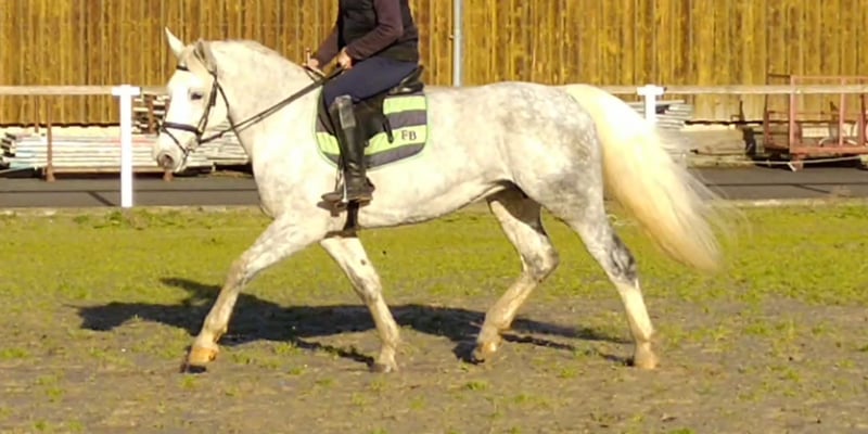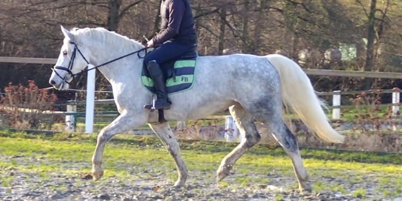 We are offering from our stock a Verband Premium mare, born on our farm. She is now six years old and has foaled twice with us. Due to her proven breeding record, we have decided to sell her. She is very well-trained under saddle, has a good size, and is easy to handle. As a three-year-old, she was also trained for single harness, and after a longer foaling break, she is currently being re-activated. A solid sport horse mare suitable for breeding, riding, and driving. She is in the prime of her life, with a beautiful dapple grey coat. If desired, she can be bred again. If you are interested, please call us at 0171/3132074.