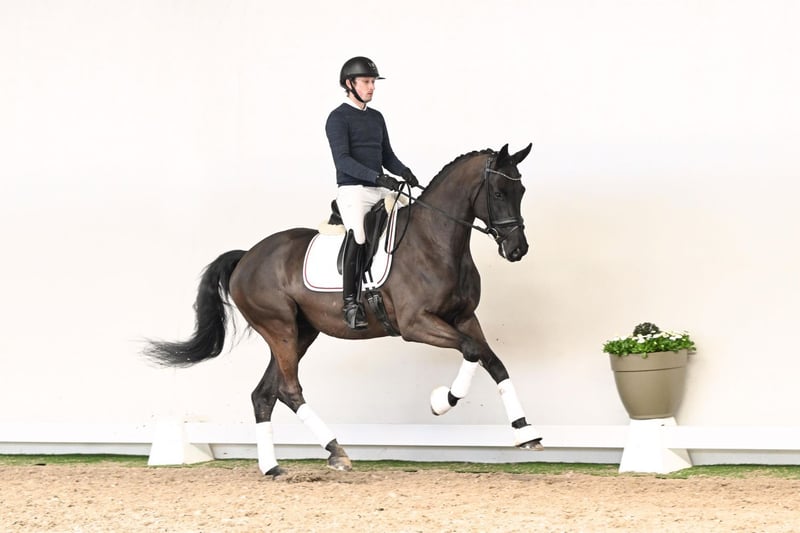 This 6-year-old gelding of ideal stature combines everything one could wish for in a modern dressage horse. With his perfectly proportioned frame and natural presence, he immediately captures attention in the arena and effortlessly draws in every spectator. He has already proven his quality with successful performances in competition. He consistently presents himself in excellent balance, with clear rhythm, elasticity, and natural suppleness throughout. Particularly noteworthy is his outstanding canter: powerful in the take-off, naturally uphill, and equipped with the scope and mechanics required for development towards advanced movements. His rideability is exceptional in every respect – responsive to the aids, attentive, and always thinking with his rider. A horse that understands his job and remains cooperative and a pleasure to ride at all times. Already placed in novice-level dressage horse classes, he stands out as a true gem with exciting future potential. His pedigree further underlines his quality: his sire, D’Egalité, celebrated champion stallion of the Westphalian licensing, impresses with elegance, light-footedness, and expressive movement up to Intermediaire I level. His offspring are renowned for their rideability, expression, and modern dressage type. On the dam’s side, Weltruhm – a son of the legendary Weltmeyer – contributes powerful movement dynamics, correct conformation, and proven performance genetics, complemented by a strong and internationally successful dam line. A horse for riders with ambition: talented, rideable, and unspoiled, with all the attributes required for a successful future in dressage sport.