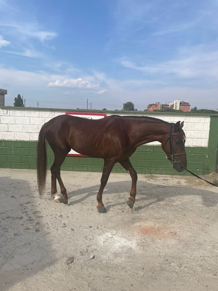 Gentle horse with a noble character. He is started in jumping. Very good in the field.
