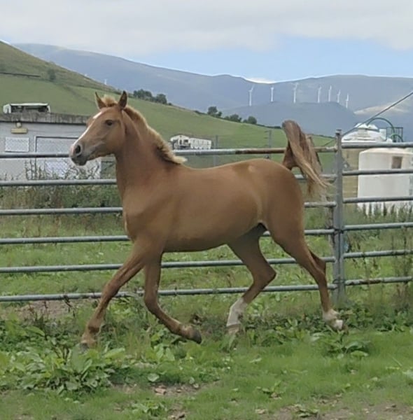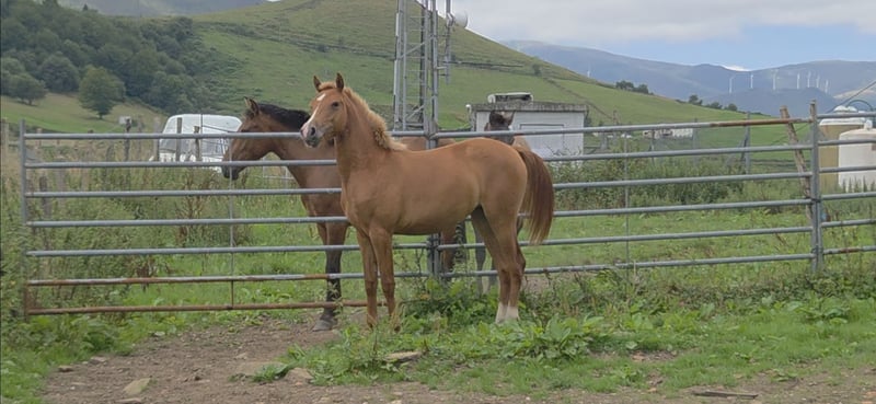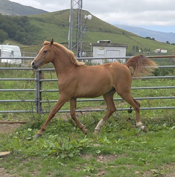 For sale, chestnut and blaze Arabian filly, 20 months old. Mother is Hispano-Arabian and father is Arabian. Very gentle and with very good movements. More information via private message. 638401333