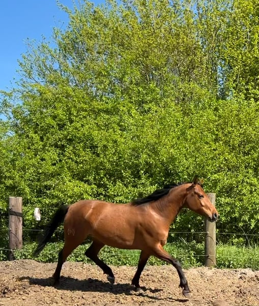 Por motivos de salud, lamentablemente, tenemos que separarnos de nuestra Leyla. Leyla es una yegua joven y enérgica, muy dispuesta a aprender y trabajar, pero también necesita una mano firme y consistente. Nació en España y allí creció en un grupo de yeguas. A los casi 2 años, llegó a Alemania, donde también fue criada de manera adecuada y respetuosa. Está bien educada, aunque requiere algo de tiempo para adaptarse a nuevas situaciones y personas. Recientemente hemos comenzado su entrenamiento de forma muy suave, y ella colabora muy bien, mostrando incluso entusiasmo por las tareas. Ha sido montada, por lo que conoce la presencia del jinete, tanto como yegua de mano como en la monta ligera, incluso en el campo sin guía, con un poco de experiencia. Paralelamente, trabajamos en el círculo de entrenamiento y en la pista. Leyla es completamente compatible con otros caballos en la manada. Es una joven potra con un potencial enorme. Nos gustaría seguir apoyándola en su desarrollo, pero problemas de salud imprevistos nos impiden hacerlo. No es una yegua para principiantes.