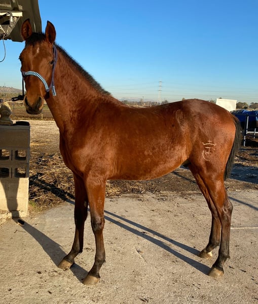Potro hispano árabe al 34,38%. Castaño 1.54cm 21 meses Entero Potro noble, ramaleado, doma de cuerda, buen trabajo pie a tierra. Buenos movimientos. Con mucho hueso