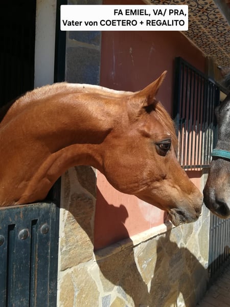 Dieser bildschöne Junghengst ist der Halbbruder väterlicherseits des REGALITO. BEIDE sind SÖHNE des umwerfenden AV EMIEL. AM 15.11.23 hat er sein 2. Lebensjahr vollendet. Ich habe ihn noch nicht gemessen, 1.50 könnte er bereits haben, genaueres folgt. Herrliche Bewegung und ein ganz lieber Charakter zeichnen ihn aus.🥰 Direkt vom Züchter 👌 Für weitere Fotos, Videos, vollständige Abstammung meldet Euch auf WhatsApp 0034 670 097 903 Eure Carmen