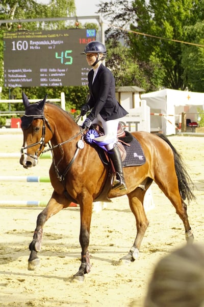 For sale: a stunning 2016-born gelding. His unique personality, which sometimes resembles that of a clown, makes him truly special. He is easy to handle, friendly, and always happy when it’s his turn. He rides alone in the terrain and is also uncomplicated and well-behaved with the farrier. He is accustomed to truck transport and is a reliable partner both at competitions and in daily riding. His motivated attitude and power make him a real competitor in show jumping. Therefore, he is not a beginner’s horse. At 7 years old, he has already competed at the S* level and has placed successfully. He also makes an excellent partner for amateurs, children, juniors, or young riders. I am selling him with a heavy heart due to an injury and a long recovery period following an accident. Viewings and test rides are available by appointment. Please contact me if interested. Phone: 0172/2963401