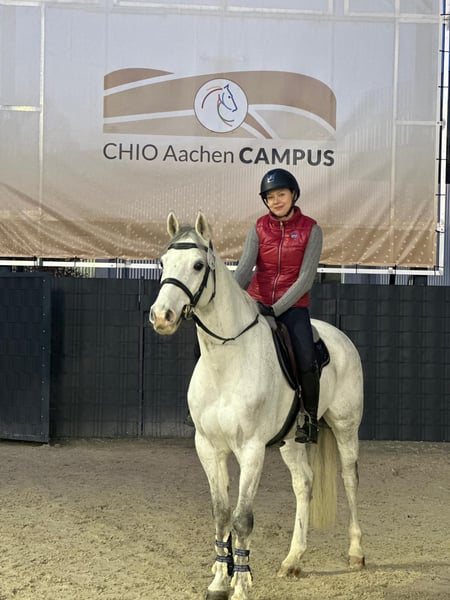 Verkaufspferd: Holsteiner-Wallach „Chattanooga“ – Clarimo Ask x Contender Zum Verkauf steht ein 12-jähriger, bildschöner Schimmelwallach mit exzellenter Abstammung (Clarimo Ask x Contender) und Turniererfahrung. Chattanooga ist im Children-Bereich bis Klasse M mehrfach platziert und hat M-Springpferdeprüfungen gewonnen. In Jungpferde- & Stilspringprüfungen erzielte er Wertnoten über 8,0 und überzeugte regelmäßig. Im Parcours begeistert er durch Konzentration, Übersicht und Leistungsbereitschaft. Er bringt viel Vermögen und Potential für die schwere Klasse (S) mit. Außerhalb des Parcours zeigt er sich aufmerksam und sensibel gegenüber seiner Umgebung, weshalb er in erfahrene und einfühlsame Hände abgegeben wird. Auch dressurmäßig ist Chattanooga sehr angenehm und schön zu reiten. Er verfügt über eine gute Grundausbildung, lässt sich leicht gut an die Hilfen stellen und zeigt beispielsweise Traversalen, Kurzkehrt, Außengalopp sowie fliegende Galoppwechsel sicher. Im täglichen Umgang braucht er etwas Zeit, um sich an neue Menschen und Umgebungen zu gewöhnen. Hat er Vertrauen gefasst, ist er ein loyaler, motivierter Sportpartner, der mit seinem Reiter durch dick und dünn geht. 🔹 Holsteiner, 12 Jahre 🔹 Wallach, Schimmel 🔹 Abstammung: Clarimo Ask x Contender 🔹 Größe: ca. 165 cm 🔹 M-platziert, M gewonnen, S-Perspektive 🔹 Wertnoten über 8,0 in Jungpferdeprüfungen 🔹 Starts bei Munich Young Talents & Aachen Youngsters 🔹 Für erfahrene Reiter 🔹 Sozial mit anderen Pferden 🔹 Standort: NRW 🔹 Probereiten: 50 €, wird bei Kauf angerechnet 📩 Bei ernsthaftem Interesse freuen wir uns über eine Nachricht oder einen Anruf!