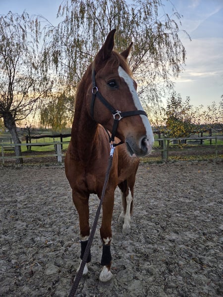 À vendre, un hongre Holsteiner de 12 ans par Clarcon. Il est très attaché à l'humain, se montre brave en extérieur et au maréchal-ferrant, et son comportement général est simple et facile. Il faut souligner sa remarquable attitude de travail. Il est toujours motivé et souhaite faire plaisir. Bien qu'il n'ait pas encore été présenté en public, je peux l'imaginer comme un excellent partenaire pour le sport dans la catégorie A-B. En raison de sa taille d'environ 1,70 m et de son tempérament, il pourrait également convenir comme cheval de voltige, bien que cela n'ait pas encore été testé. Il est vendu uniquement parce que ses propriétaires souhaitent se réorienter. Plus de photos et vidéos sur demande.