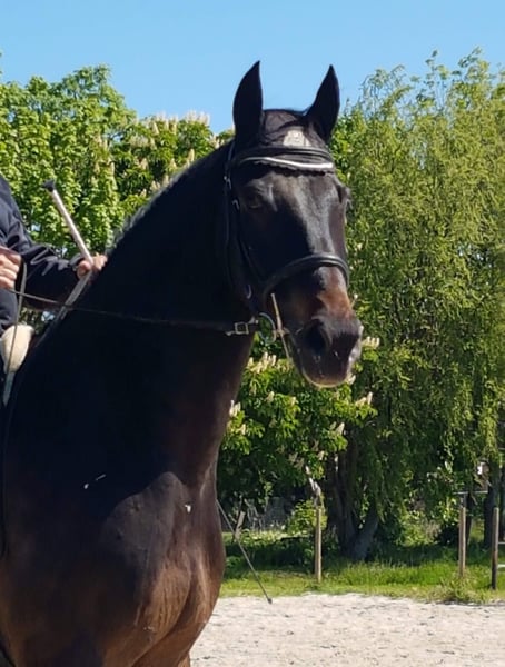 Leonardo - ein außergewöhnlicher Holsteiner Wallach, geboren 2011, mit einem Stockmaß von ca. 174 cm und einer edlen dunkelbraunen Farbe. Bereits als Fohlen mit der Staatsprämie ausgezeichnet, überzeugt er durch seinen bildhübschen Ausdruck, seinen großrahmigen, gut gebauten Körper und seiner besten Gesundheit. Er ist barhuf, hatte weder Lahmheiten, Koliken noch Allergien und zeigt sich beim Schmied sowie beim Verladen stets vorbildlich. Leonardo kennt sowohl Boxen- als auch Weidehaltung und ist bestens sozialisiert in der Herde. Im täglichen Umgang ist er ein echtes Herzenspferd: freundlich, menschenbezogen, aufgeschlossen und ausgeglichen. Er zeigt sich mutig, unerschrocken und ist vertraut mit Landwirtschaftsfahrzeugen, Hunden und allem, was zum Alltag dazugehört. Leonardo wurde mit viel Liebe und Geduld im Sinne der École de Légèreté ausgebildet. In der Dressur ist er bis zu S-Lektionen gearbeitet, wurde ein- und zweispännig vom Profi gefahren, zuverlässig im Straßenverkehr, und zeigt, das er auch beim Springen Spaß hat. Zudem beherrscht er sowohl klassische Handarbeit als auch Bodenarbeit nach Parelli. Seine herausragenden Grundgangarten, sein großes Talent und seine Lernfreude machen ihn zu einem echten Allrounder mit Perspektive. Aufgrund seines fortgeschrittenen Ausbildungsstandes ist Leonardo nicht für Anfänger geeignet, bietet jedoch ambitionierten Reitern ein qualitätsvolles, ehrliches und verlässliches Pferd, das jeden Tag Freude bereitet. Schweren Herzens wird Leonardo wegen Aufgabe des Reitsports in liebevolle Hände abgegeben. Er ist ein außergewöhnliches Pferd mit vielseitigen Einsatzmöglichkeiten, großem Herz und einem wundervollen Charakter - ein Partner fürs Leben.