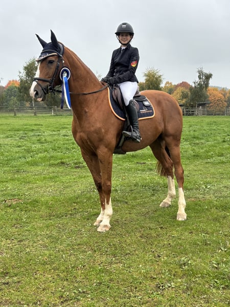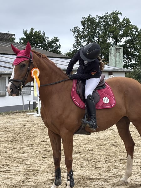 Cocsyn ist ein 15-jähriger Holsteiner-Wallach von Cosido und Cardino. Er ist ein ideales Umsteigerpferd von Pony auf Großpferd. Er hat unsere 12-jährige Tochter für zwei Jahre durch den Verbandskader bis hin zum Landeskader begleitet Angefangen mit E Springen konnten die beiden sich schnell in die Klasse A und L hocharbeiten. Sicher im L-Springen angekommen, konnten die beiden zum Ende der Turniersaison ihre erste gemeinsamen M-Platzierung verzeichnen. Wir suchen für ihn ein neues zu Hause, wo er mit seinem neuen Reiter/Reiterin genau diesen Weg auch gehen kann. Cocsyn ist allerdings kein „Selbstläufer“, sondern möchte geritten werden. Er ist im Umgang ein unkomplizierter und lieber Wegbegleiter. Er war bei uns nie krank oder verletzt. Wir haben ihn vor zwei Jahren aus dem Bekanntenkreis übernommen, wo er auch immer gesund war. Eine AKU kann natürlich durchgeführt werden.