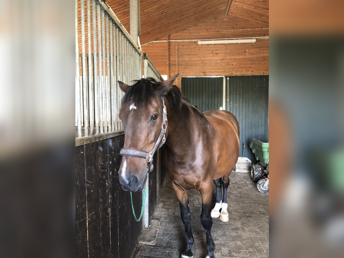 Ehemaliges Springpferd mit Erfolgen bis L sucht einen Platz zum ausruhen. Er ist ein ganz Lieber und er verdient es noch ein bisschen betüddelt und geliebt zu werden. Nach einem Sehnenschaden (Fesselträger) und auch schon etwas fortgeschrittenem Alter ist er nur für gelegentliches Reiten geeignet . Seine Hauptaufgabe sollte die Betreuung von Kollegen auf der Wiese und im Stall sein. Er ist regelmäßig beim Schmied und beim Zahnarzt . Brav im Umgang und von ausgeglichenem Temperament.