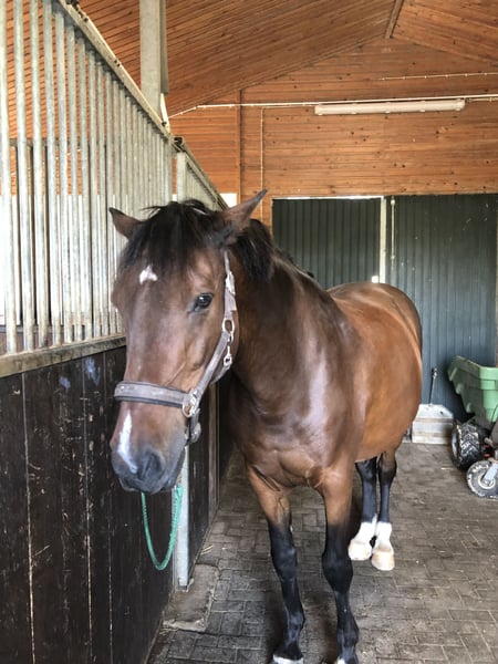 Former show jumping horse with achievements up to L level seeking a peaceful retirement spot. He is a very gentle soul and still deserves some pampering and love. After suffering a tendon injury (suspensory ligament) and being somewhat advanced in age, he is only suitable for occasional riding. His primary role should be caring for colleagues in the pasture and stable. He is regularly attended to by the farrier and the veterinarian. Well-behaved and of a calm temperament.