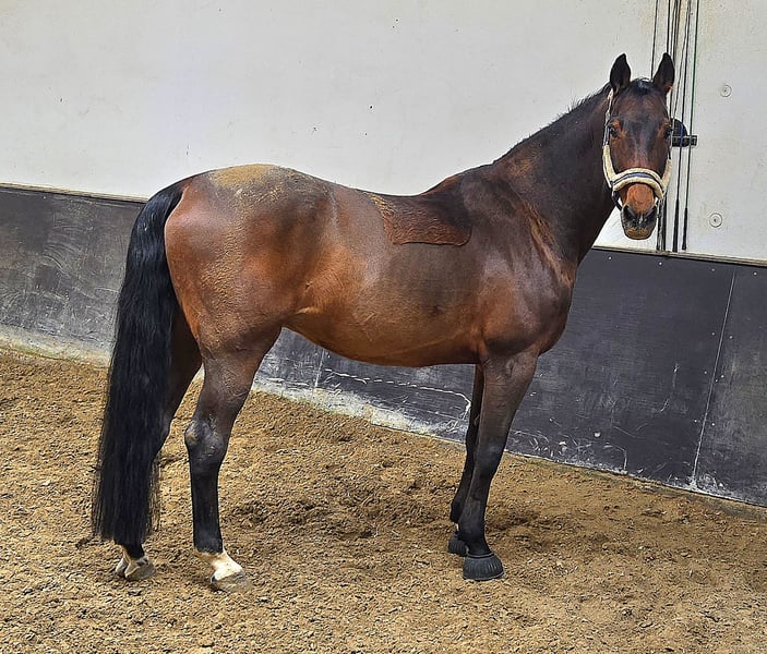 Claritos sucht ein liebevolles Zuhause Zum Verkauf steht unser wunderschöner 16-jähriger Wallach Claritos (ca. 170 cm), abstammend von Clarimo. Claritos war viele Jahre erfolgreich im Springsport und auf Turnieren unterwegs und bringt daher viel Erfahrung und Routine mit. Auch als gekörter Deckhengst war er im Einsatz. Durch diese Vergangenheit hat er einen starken, präsenten Charakter und wünscht sich eine ruhige, erfahrene Bezugsperson, die ihm Sicherheit und klare Führung gibt. Heute wird Claritos als gehobenes Freizeitpferd geritten und genießt eine abwechslungsreiche, aber angepasste Arbeit. Er ist weiterhin reitbar, sollte jedoch nicht mehr stark belastet oder im Turniersport eingesetzt werden, damit er langfristig gesund und zufrieden bleibt. ✨ Das bringt Claritos mit: Ehemaliges, erfolgreiches Spring- und Turnierpferd Viel Erfahrung und ein ehrlicher Charakter Aufmerksamer und interessierter Partner Vollständig geimpft & regelmäßig entwurmt Haltungswunsch: Boxenhaltung mit regelmäßigem Auslauf ❤️ Was wir uns wünschen: Ein liebevolles, langfristiges Zuhause bei erfahrenen Pferdemenschen, die seinen Charakter zu schätzen wissen. Er ist kein Anfängerpferd, dafür aber ein toller Partner für jemanden, der Freude an einem charakterstarken Pferd hat. Standort: Oberbieber Bei ernsthaftem Interesse freuen wir uns über eine Nachricht! Kein Notverkauf – kein Verkauf an Händler.