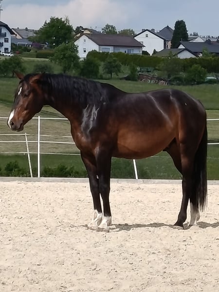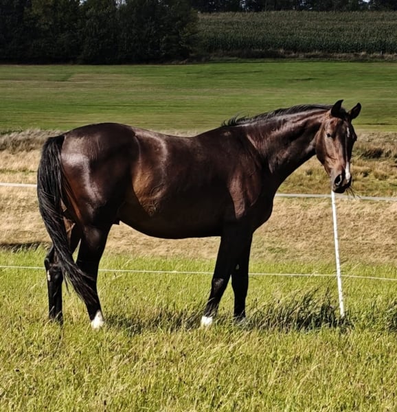 Sprzedaję z powodów wiekowych swojego hodowlanego 3-letniego Chezara. Jego matka Contendro's Lady z linii 1916, znana i ceniona dzięki United Way, Concerto II, Conway, Clearway itp., sama odnosiła sukcesy do M**. Chezar jako źrebię był już pewny siebie i odważny, dorastał w stadzie ogierów, a po kastracji wrócił do nas. Ponieważ jest bardzo rozwinięty i nie boi się nowych rzeczy, można go dobrze wsiąść. Jest szczery, ale już dominujący, dlatego chciałbym dla niego doświadczonego, konsekwentnego partnera. Zdjęcia rentgenowskie z 10/2024 są dostępne. W przypadku zainteresowania chętnie prześlę więcej zdjęć i informacji.