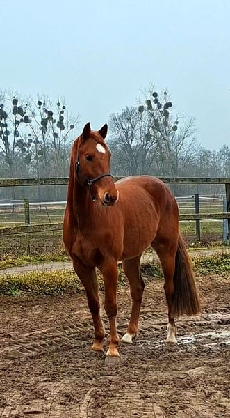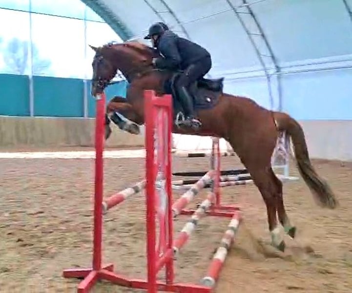Zum Verkauf steht ein qualitätsvoll gezogener 4-jähriger Wallach mit einem aktuellen Stockmaß von ca. 1,64 m (noch im Wachstum). Er ist bereits schonend angeritten und überzeugt durch seine Rittigkeit, Lernbereitschaft sowie seinen ausgeglichenen Charakter. Erste Sprünge aus dem Trab und Galopp absolviert er souverän, mit guter Übersicht und viel Vermögen. Besonders hervorzuheben sind seine natürliche Springveranlagung sowie seine positive Einstellung zur täglichen Arbeit. Ein vielversprechendes Nachwuchspferd für den Springsport. Bei interesse, sowie weitere Videos etc. gerne anrufen oder per WhatsApp 015206609392