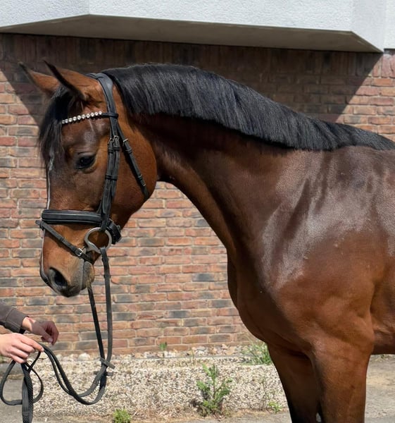 Angerittener Wallach mit überzeugendem Freispringen. Er geht in allen 3 GGA unterm Reiter und benimmt sich dabei vorbildlich. Auch im Umgang sehr lieb. Röntgenbilder liegen vor.
