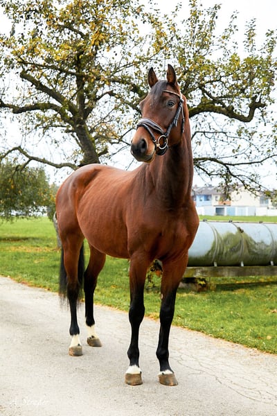 Zum Verkauf steht ein bildhübscher, sehr blutgeprägter 4-jähriger Holsteiner Wallach von Casall x Larimar. Direkt vom Züchter, bekam dieser Jungspund die nötige Zeit zum Reifen und Wachsen und wurde erst vor kurzem schonend angeritten. Mit einem aktuellen Stockmaß von ca. 1,63m und noch im Wachstum stehend, ist Copernicus das ideale Mädchen- oder Ponyumsteiger-Pferd. Er verfügt über drei gute GGA und zeigt sich beim Freispringen mutig, gekoppelt mit viel Übersicht und Vermögen! Der Wallach hat eine tolle Arbeitseinstellung, will immer gefallen und alles richtig machen, ist dabei super kopfklar und gelehrig. Auch im Umgang ist Copernicus sehr brav, menschenbezogen, schmiede- und verladefromm sowie herdenverträglich! Eine AKU / Röntgenbilder ohne Befund liegen vor! Aufgrund einer Fehlstellung vorne rechts (Bockhuf) wird er weit unter Wert verkauft! Der Wallach hatte damit noch nie Probleme. Anfragen bei ernsthaftem Interesse bitte nur telefonisch oder per WhatsApp unter +49 176 46187186