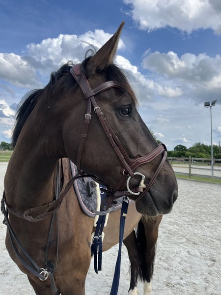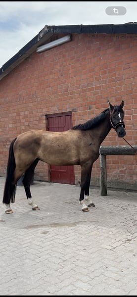 For sale is the 5-year-old gelding Tullamore by Taloubet out of a Quintero mare. Tullamore was gently backed last winter, spent the summer months grazing peacefully in a large herd, and has been in professional training since November. He is now receiving a solid basic education and gaining routine in daily work. He has also completed a few small jumps during this time. Tullamore stands approximately 170 cm (16.1 hh), and in winter, he wears a dark brown coat, which lightens in color during the summer months. He has an honest character. In work, he is approachable, but at this stage, he is not yet ready to compete in a show jumping class. X-rays are not available.